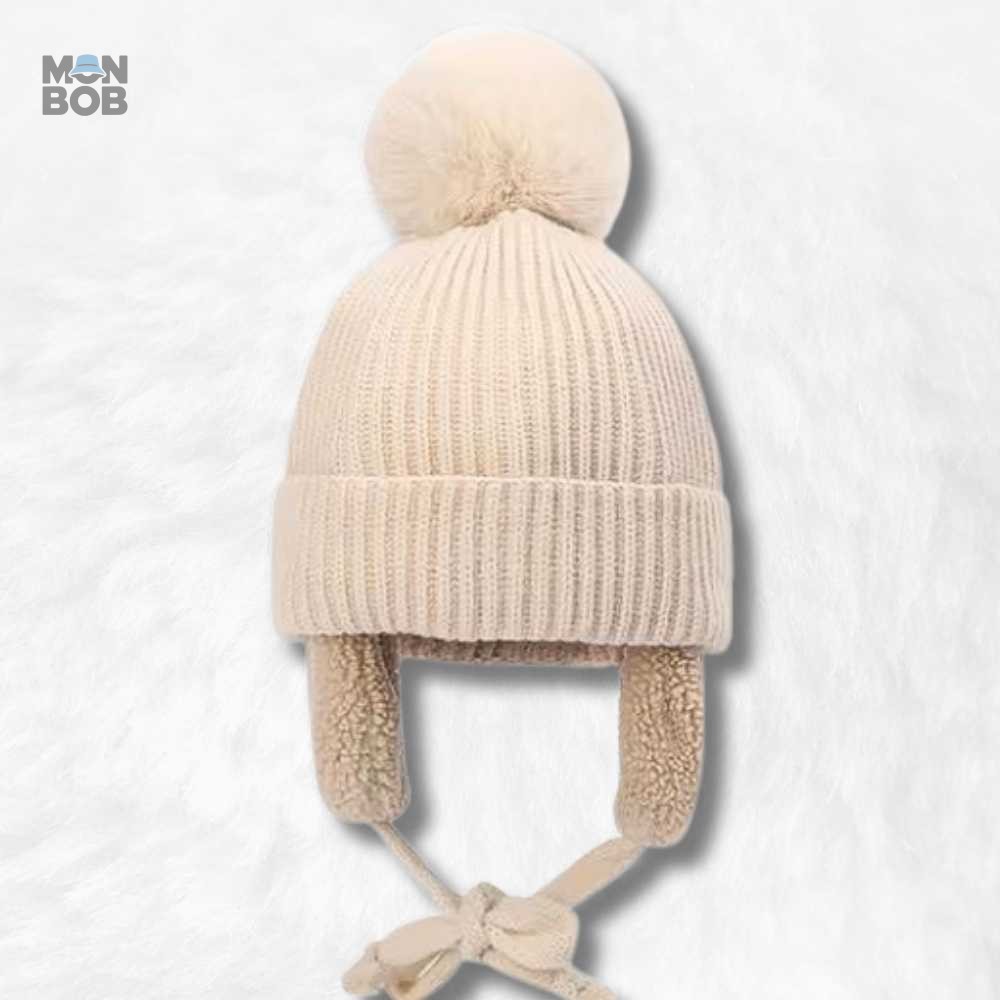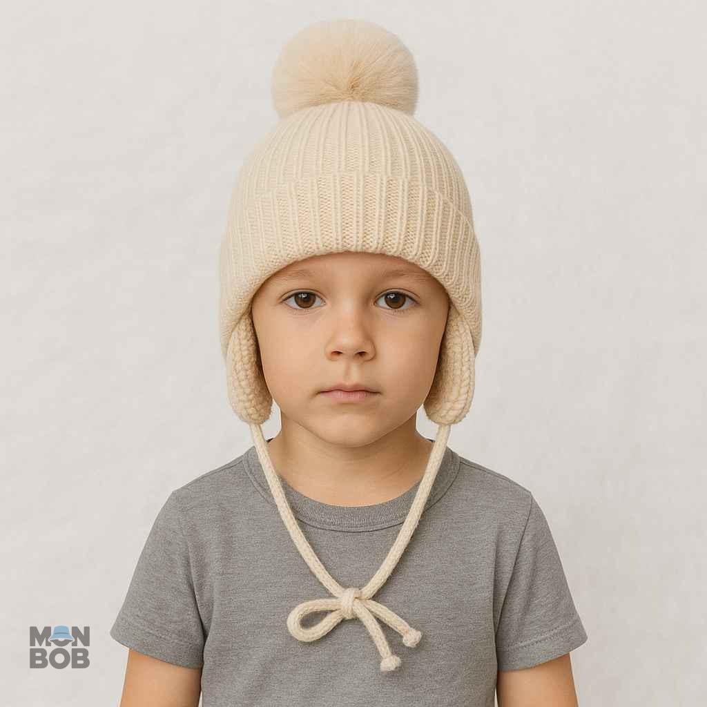 Bonnet Cache Oreille Beige à Pompon pour Enfant : Élégance et Confort
