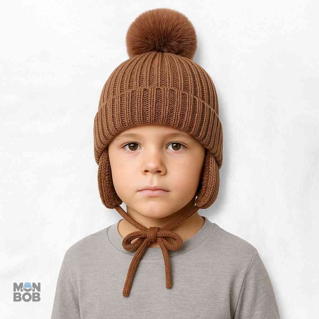Bonnet Cache Oreille Marron à Pompon pour Enfant : Style et Confort en Hiver